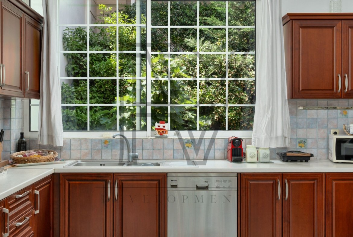 Τα μεγάλα ανοίγματα ενισχύουν την αίσθηση του χώρου και προσφέρουν όμορφη θέα στον περιβάλλοντα κήπο, ο οποίος είναι ιδανικός για χαλάρωση ή για παιχνίδι με τα παιδιά. Ο κήπος προσφέρει μια όαση ηρεμίας, ενώ η θέση πάρκινγκ εξασφαλίζει εύκολη πρόσβαση και άνεση για εσάς και τους καλεσμένους σας.