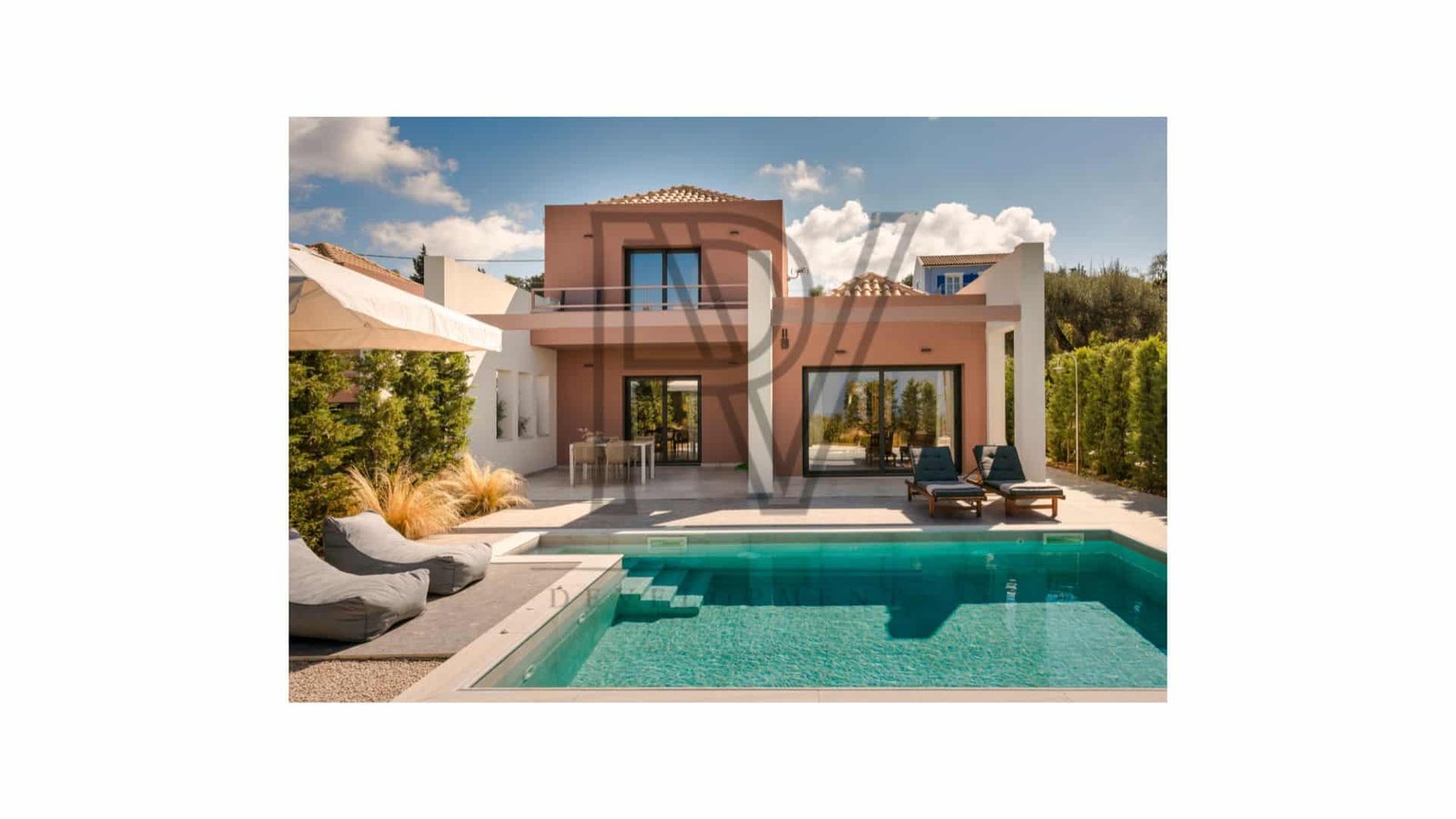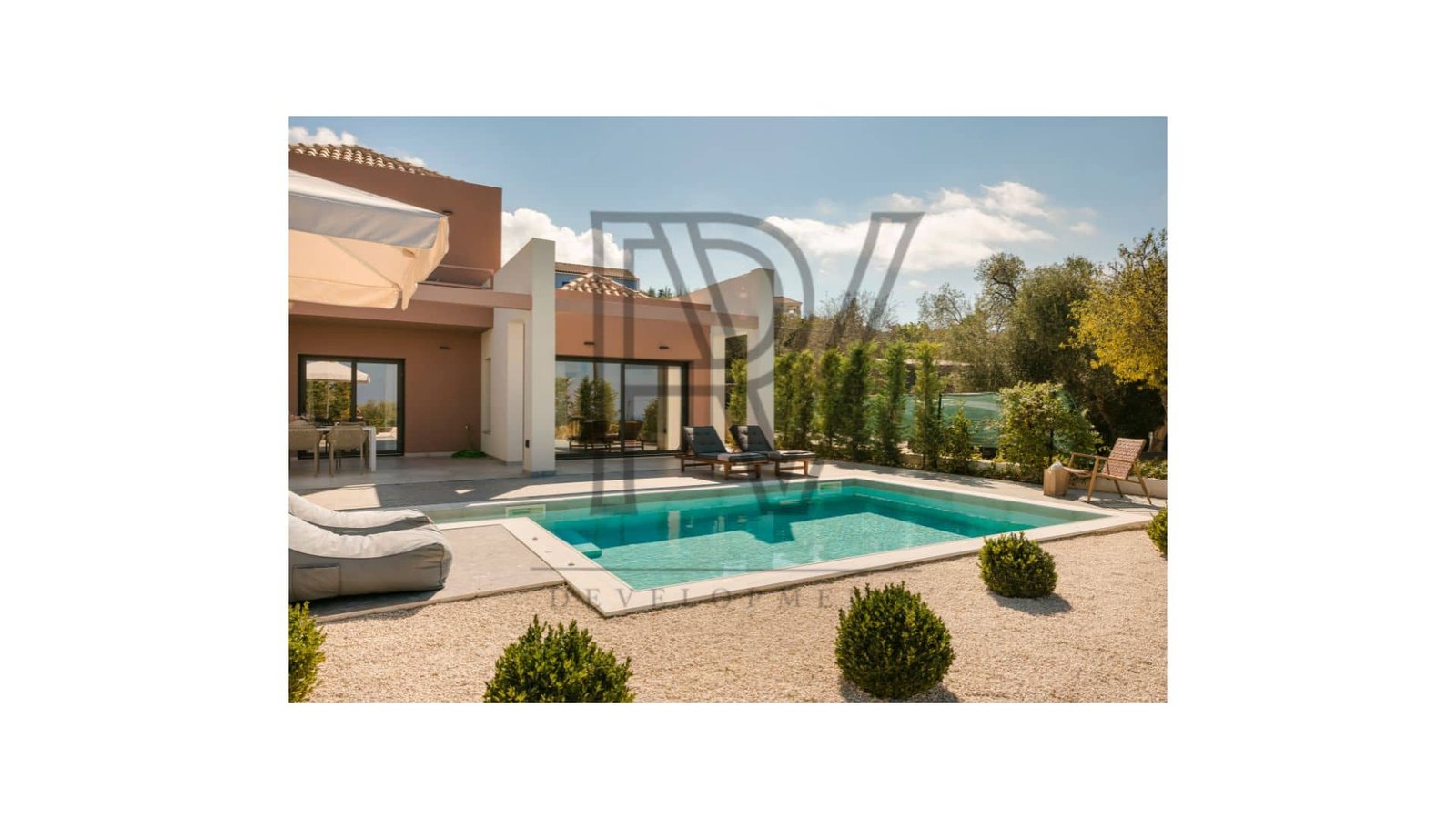 πανοραμική θεά προς το Ιόνιο Πέλαγος . Οι κατοικίες είναι σύγχρονες και πλήρως
