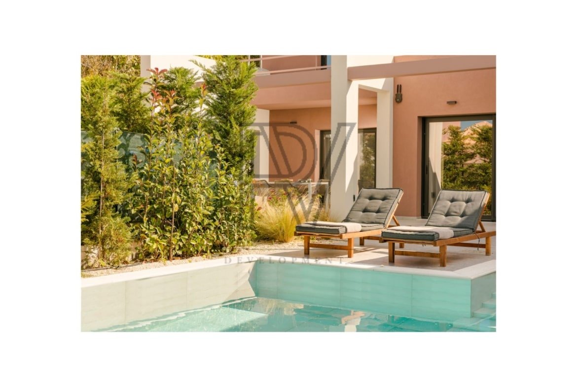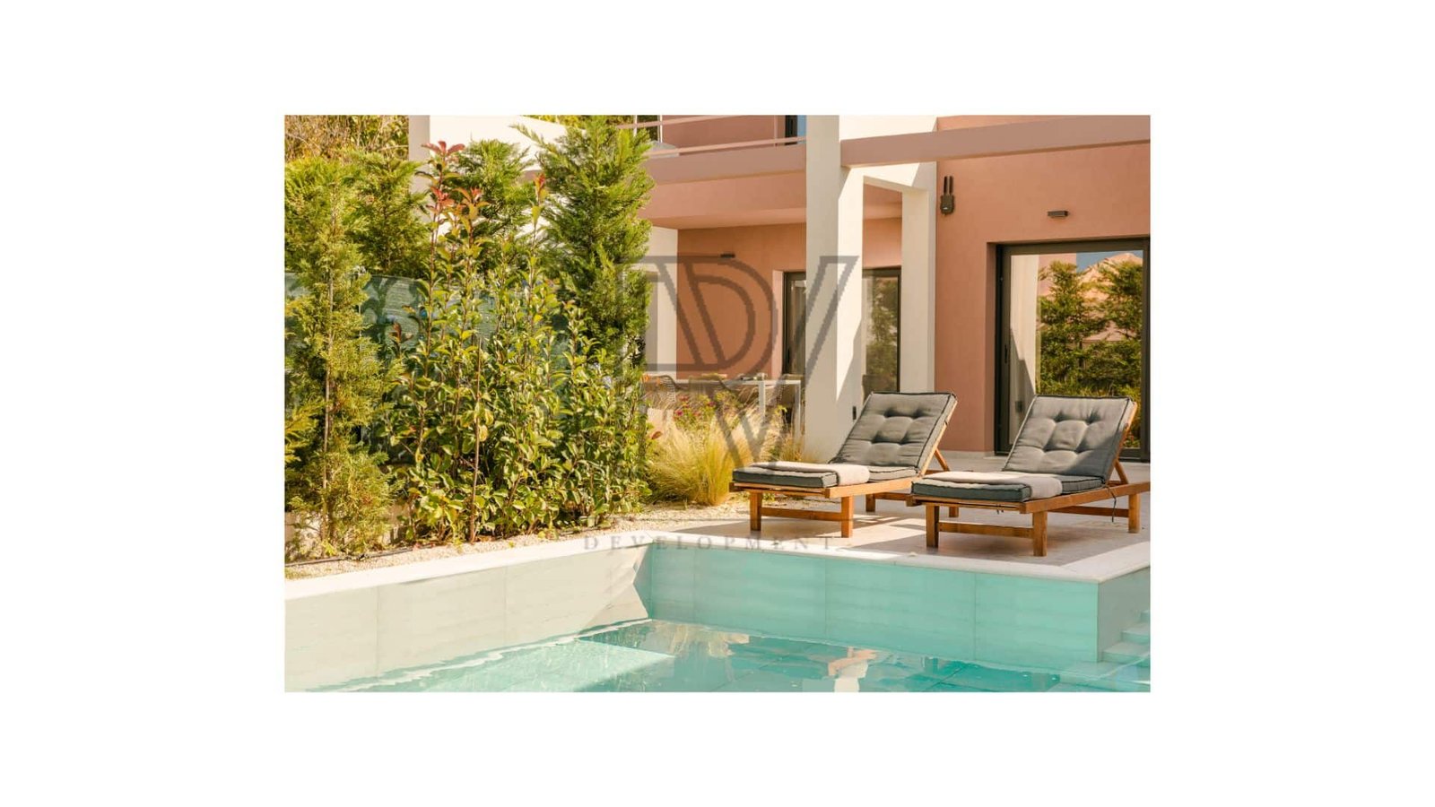 άνετους χώρους. Κάθε κατοικία διαθέτει τη δική της ιδιωτική πισινά, προσφέροντας